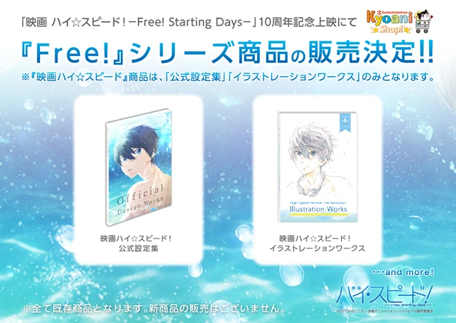 『映画 ハイ☆スピード!-Free! Starting Days-』10周年記念上映の一部劇場にて、「映画ハイ☆スピード! 公式設定集」と「映画ハイ☆スピード! イラストレーションワークス」の販売が決定しました!